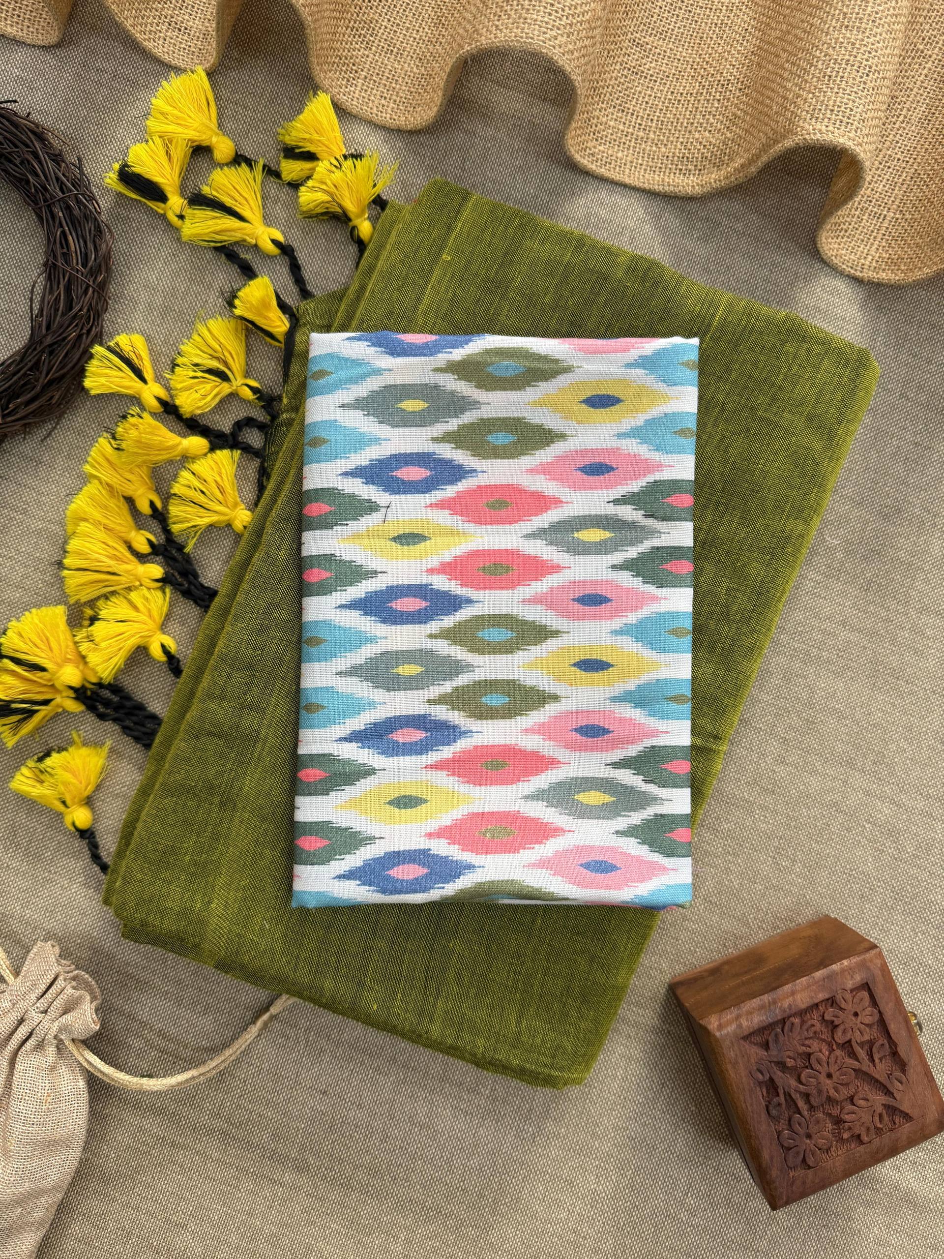 AWSOME - MAHENDI HANDLOOM COTTON SAREE WITH PRINTED BLOUSE
