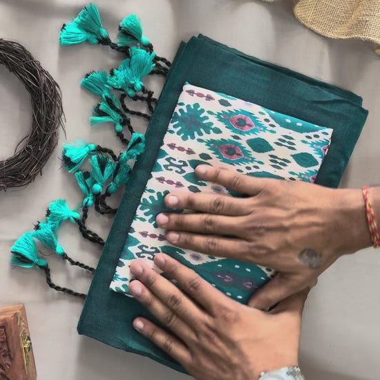 Experience the elegance of tradition with this pure handloom cotton saree, featuring delicate tassels that add a refined touch. Paired with a beautifully printed blouse, this ensemble offers both comfort and style, perfect for formal occasions or festive celebrations. The breathable cotton fabric ensures all-day wearability, while the handloom craftsmanship highlights artisanal quality. Elevate your wardrobe with this timeless piece that blends classic charm with contemporary design.