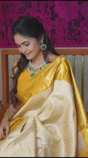 - Beige Banarasi Silk Woven Design Saree With Gold Zari Weaving