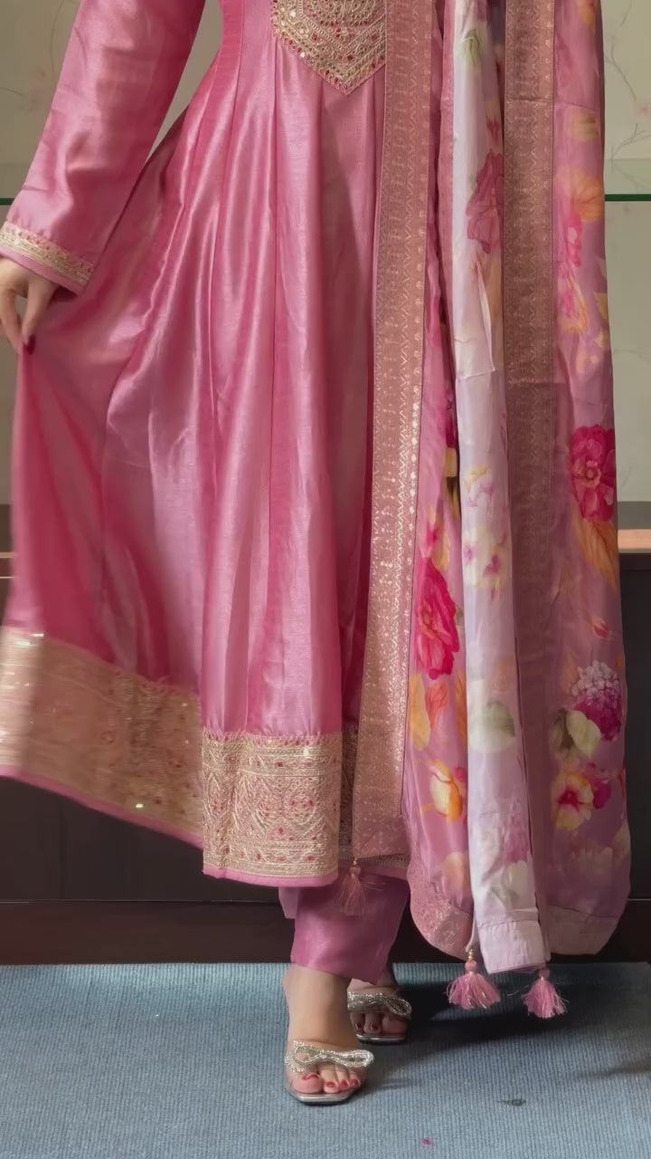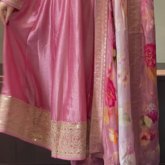 MOST MAGNIFICENT BANANA SILK ANARKALI STYLE SUIT SET