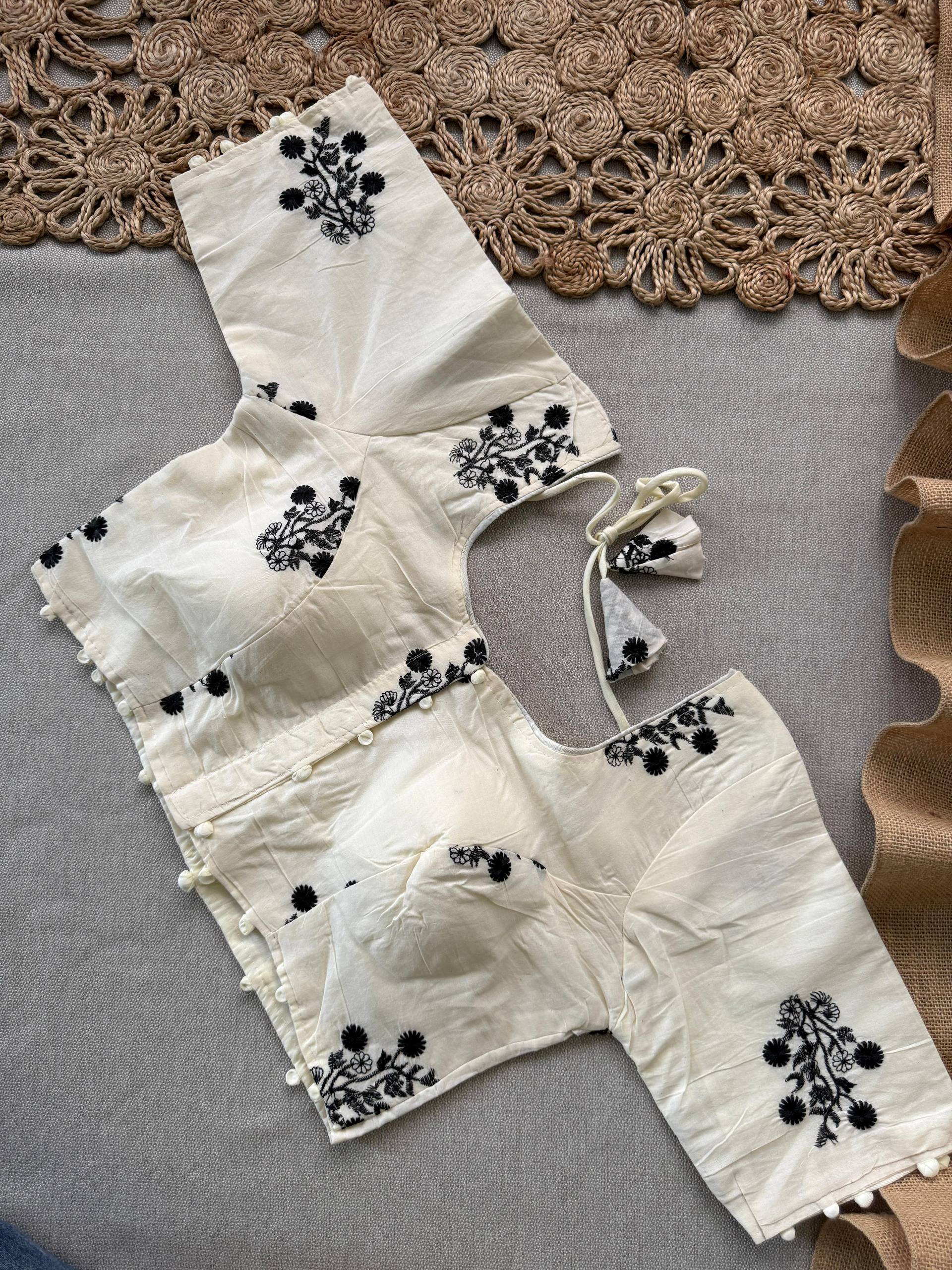Magic - Gray Handloom Cotton Saree With Havy Embroidery Stitched Blouse