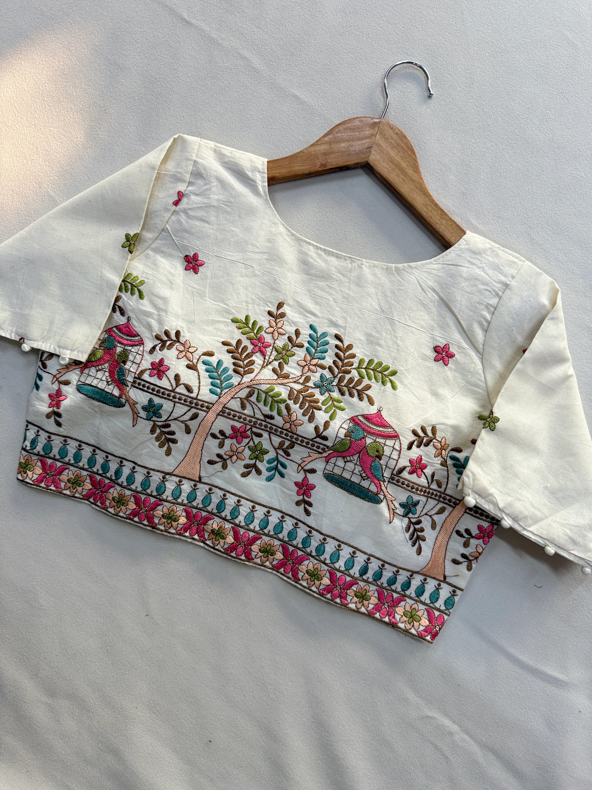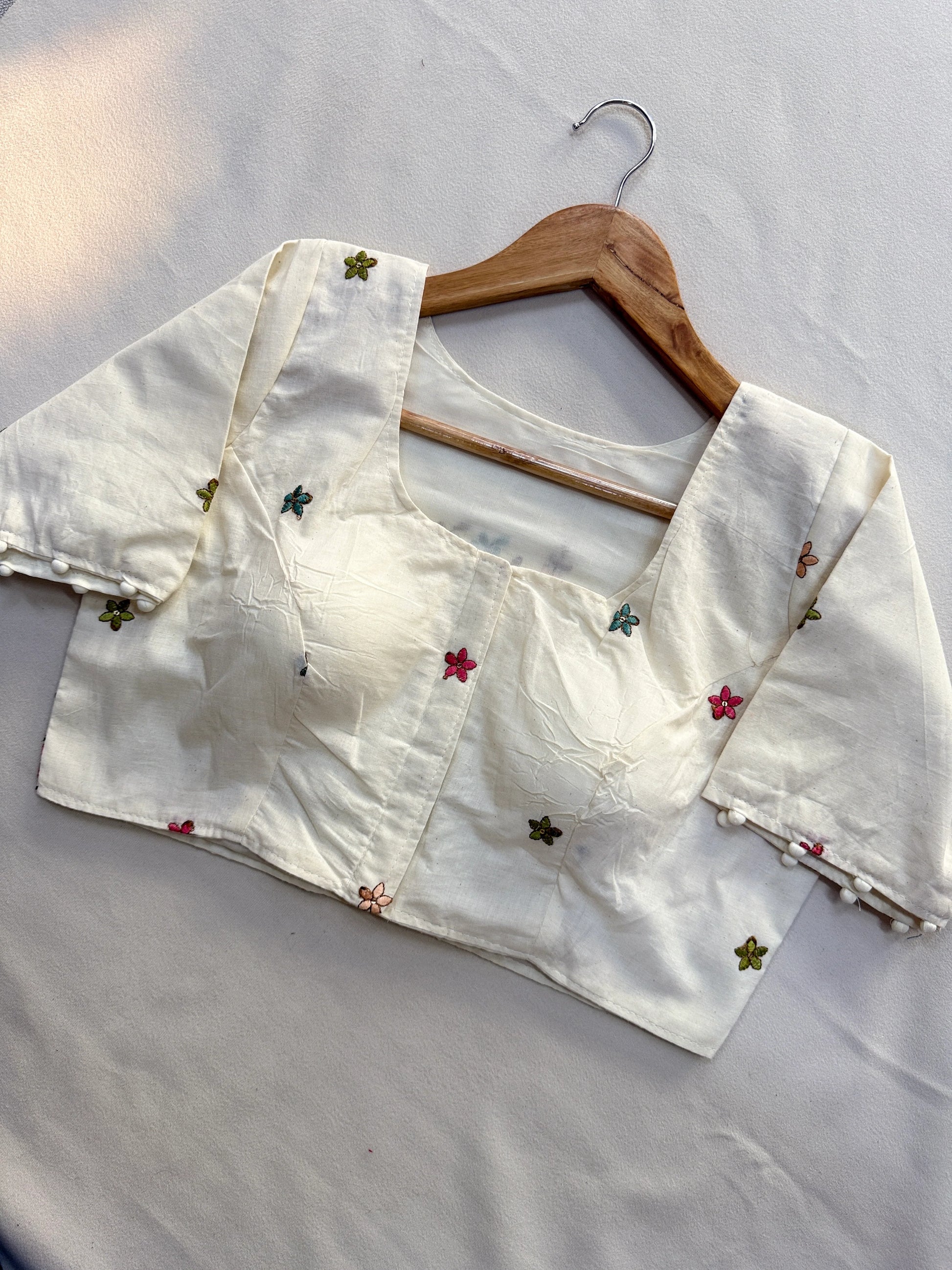 - Yellow Pure Handloom Cotton Saree With Stitched Embroidery Blouse